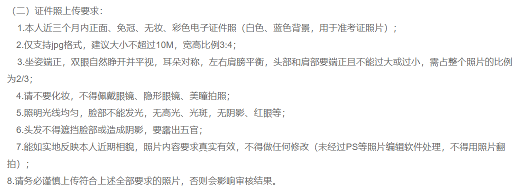 请务必谨慎上传符合上述全部要求的照片,否则会影响审核;
