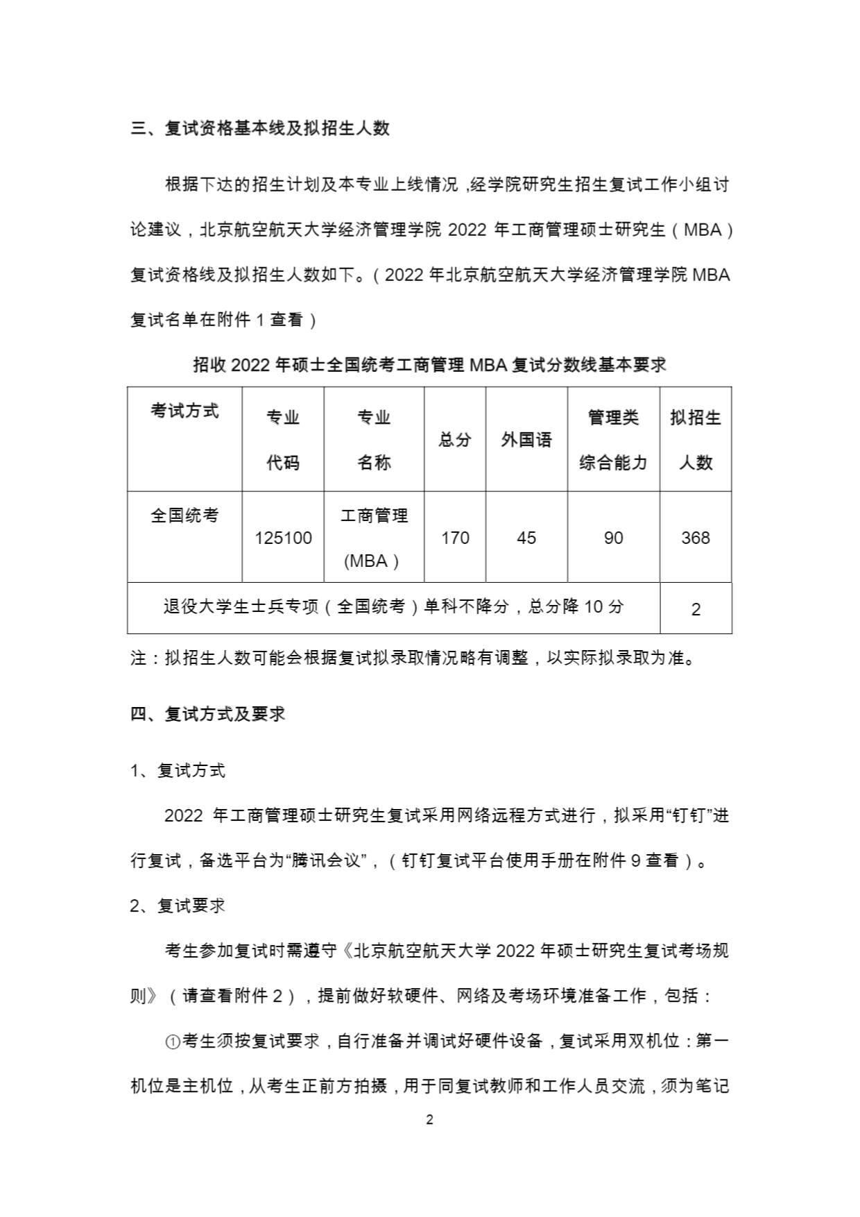 原文标题:北京航空航天大学经济管理学院2022年工商管理硕士研究生(MBA)招生复试工作方案
