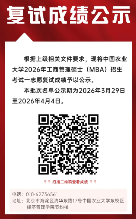 导读:2026年中国农业大学MBA招生考试一志愿复试成绩公示