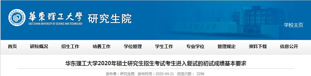 继2020考研国家线公布后,34所自主划线院校和各大院校也陆续公布2020年复试分数线。华东理工大学已经公布2020年硕士研究生入学考试复试基本分数线,如下所示: