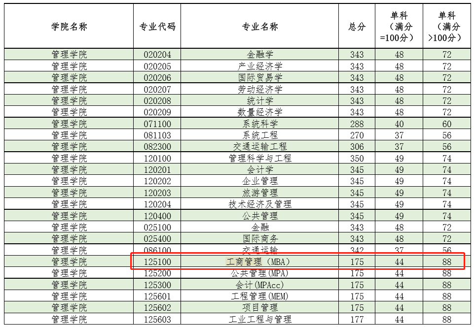 上海理工大学2020年MBA复试基本分数线:175/44/88