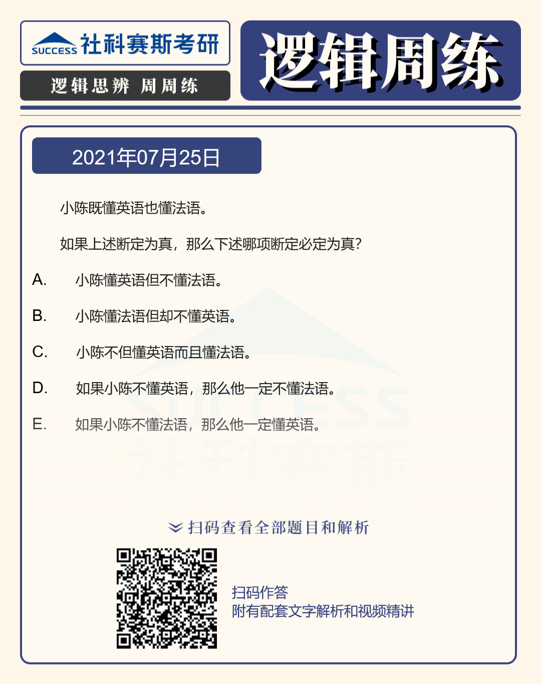 以上就是“2022MBA逻辑:2022MBA联考逻辑习题及答案解析(7月25日)”的全部内容,更多逻辑精选习题,请持续关注社科赛斯MBA备考网!