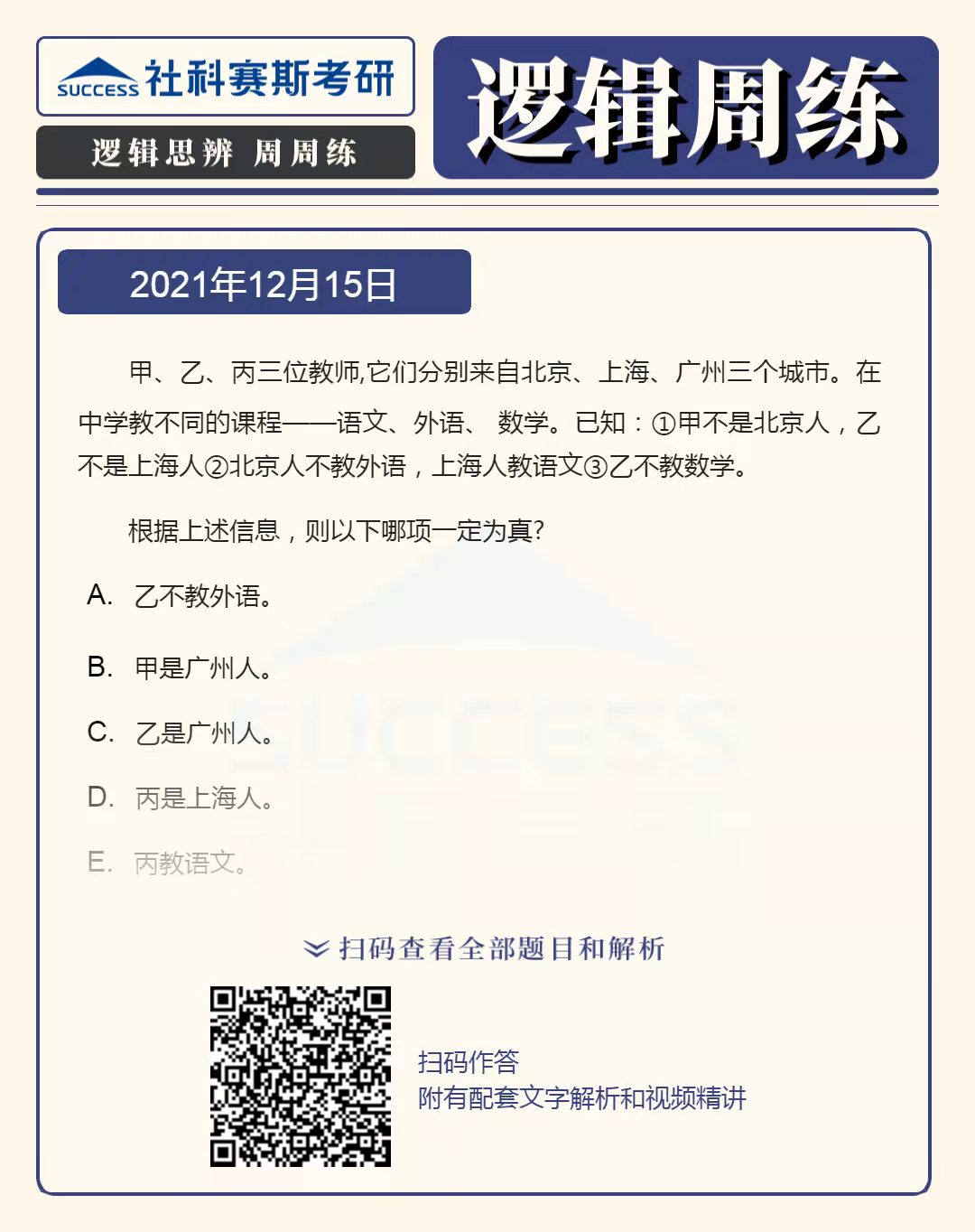 以上就是“2022MBA逻辑:2022MBA联考逻辑习题及答案解析(12月15日)”的全部内容,更多逻辑精选习题,请持续关注社科赛斯MBA备考网!