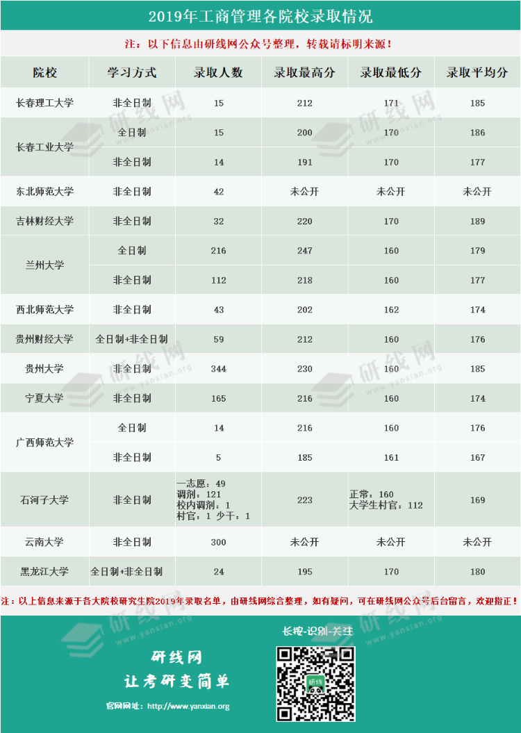 2019考研已经接近尾声,对于2020考研的同学们来说,除了做好备考准备还应及早确定院校,锁定目标。小编今天准备了“【研线数据行】2019年工商管理硕士MBA各院校录取最高分、最低分等”,里面包含:2019年全国院校工商管理硕士MBA录取人数、录取最高分、录取最低分以及录取平均分等内容。希望能帮助到大家!