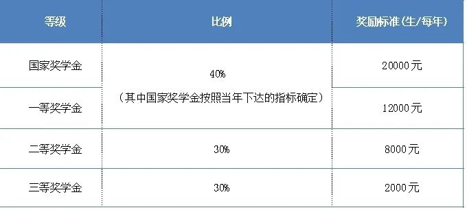 全日制硕士研究生奖学金奖励标准(定向除外)