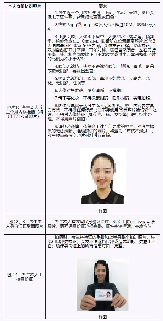 所有考生均须按照要求,上传本人身份材料照片1-4。