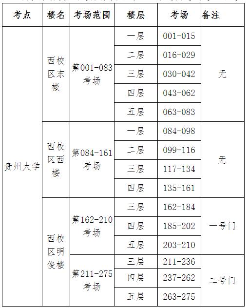 考生仅可从贵州大学西校区正门(甲秀南路)进入,其他校门均处于封闭状态。