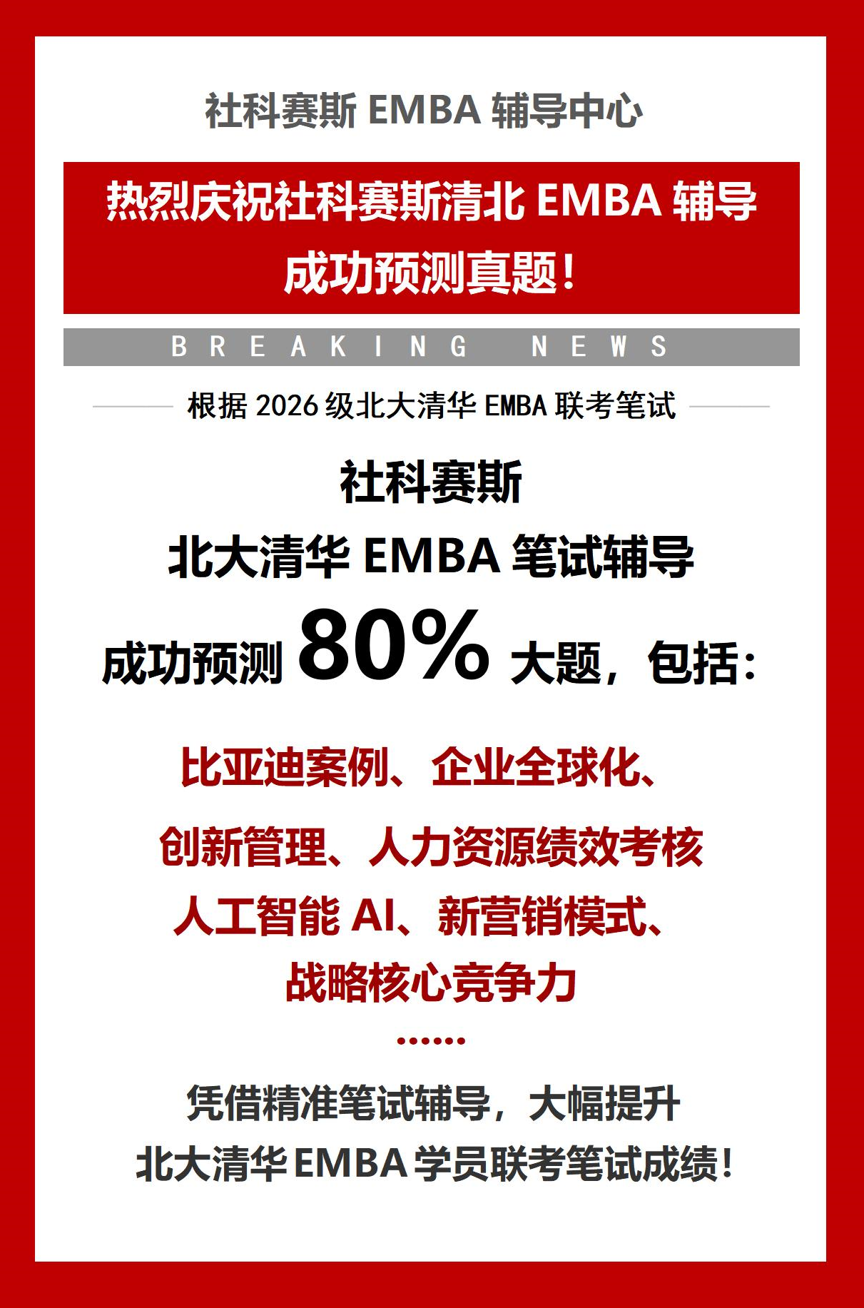 恭喜社科赛斯命中2026清北EMBA笔试部分真题,以下是命中内容。