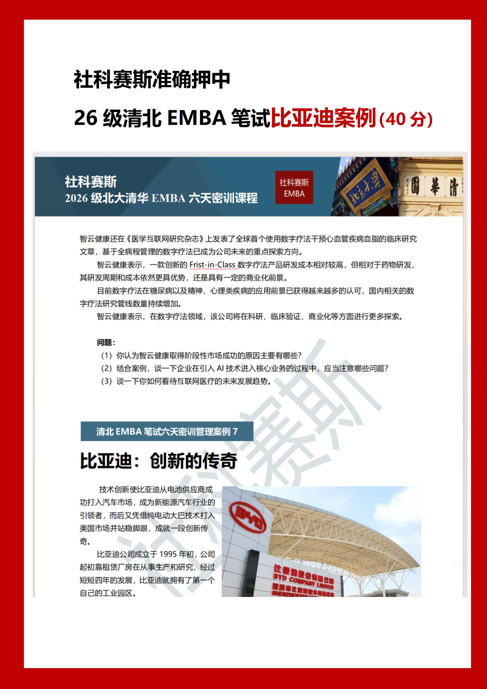 导读:恭喜社科赛斯命中2026清北EMBA笔试部分真题,以下是命中内容。