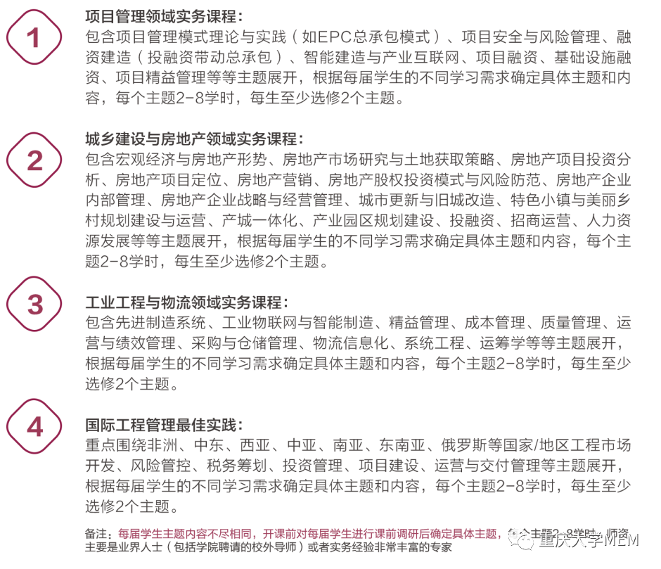 重庆大学工程管理硕士(MEM)主干课程设置:
