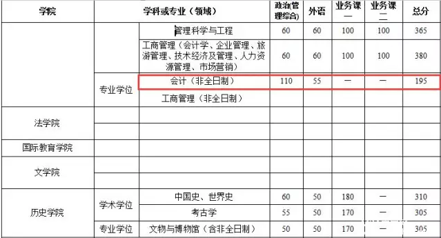 武汉大学2017年会计硕士招生考试复试基本分数线为195/55/110
