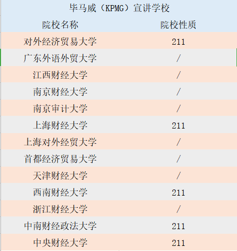 四大的宣讲会院校,基本上就是四大最喜欢招聘的院校。这里给大家整理了一份清单,快来一起看看吧。