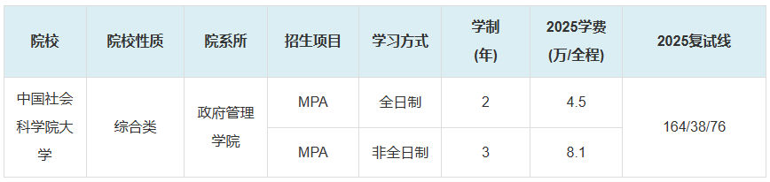 2025年中国社会科学院大学MPA复试分数线情况如下: