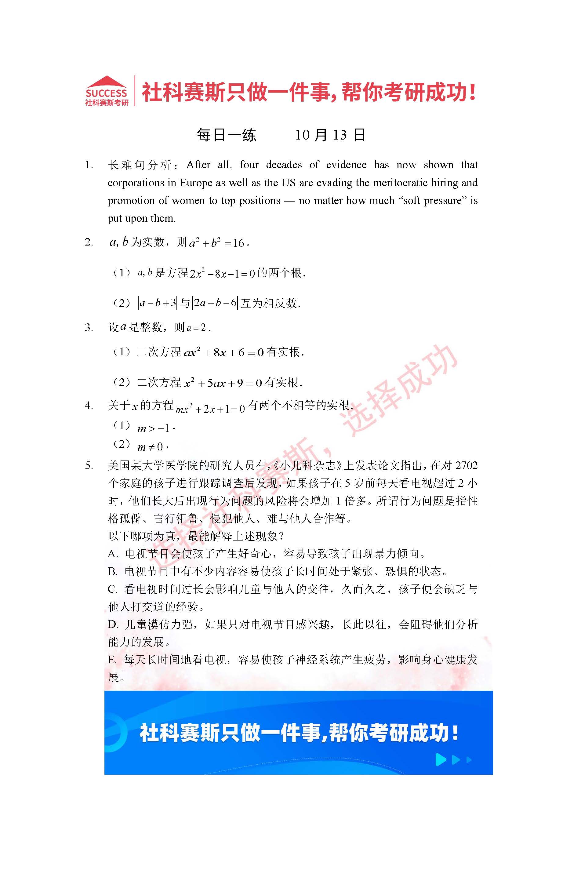 导读:考研是一场持久战,保持良好的学习习惯,是能确保复习高效的关键。今天社科赛斯MBA备考网小编整理了“2022管理类联考10月13日每日一练及答案”的内容,希望能对广大考生有所帮助。