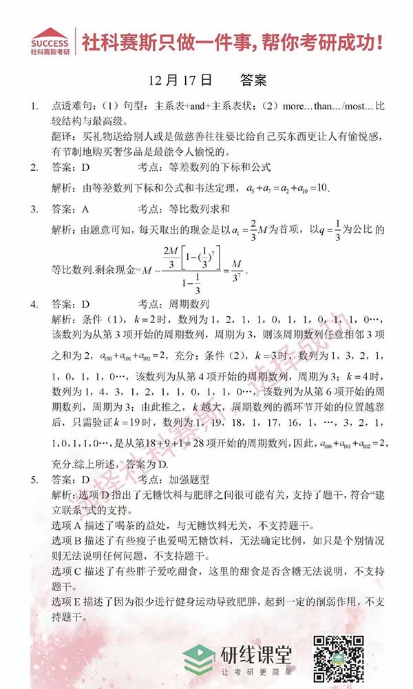 考研是一场艰苦的奋斗,每一个成功的人都是坚持到最后的。MBA备考网小编为大家整理了一些管综题,作为大家的每日一练。希望能够帮助到大家。