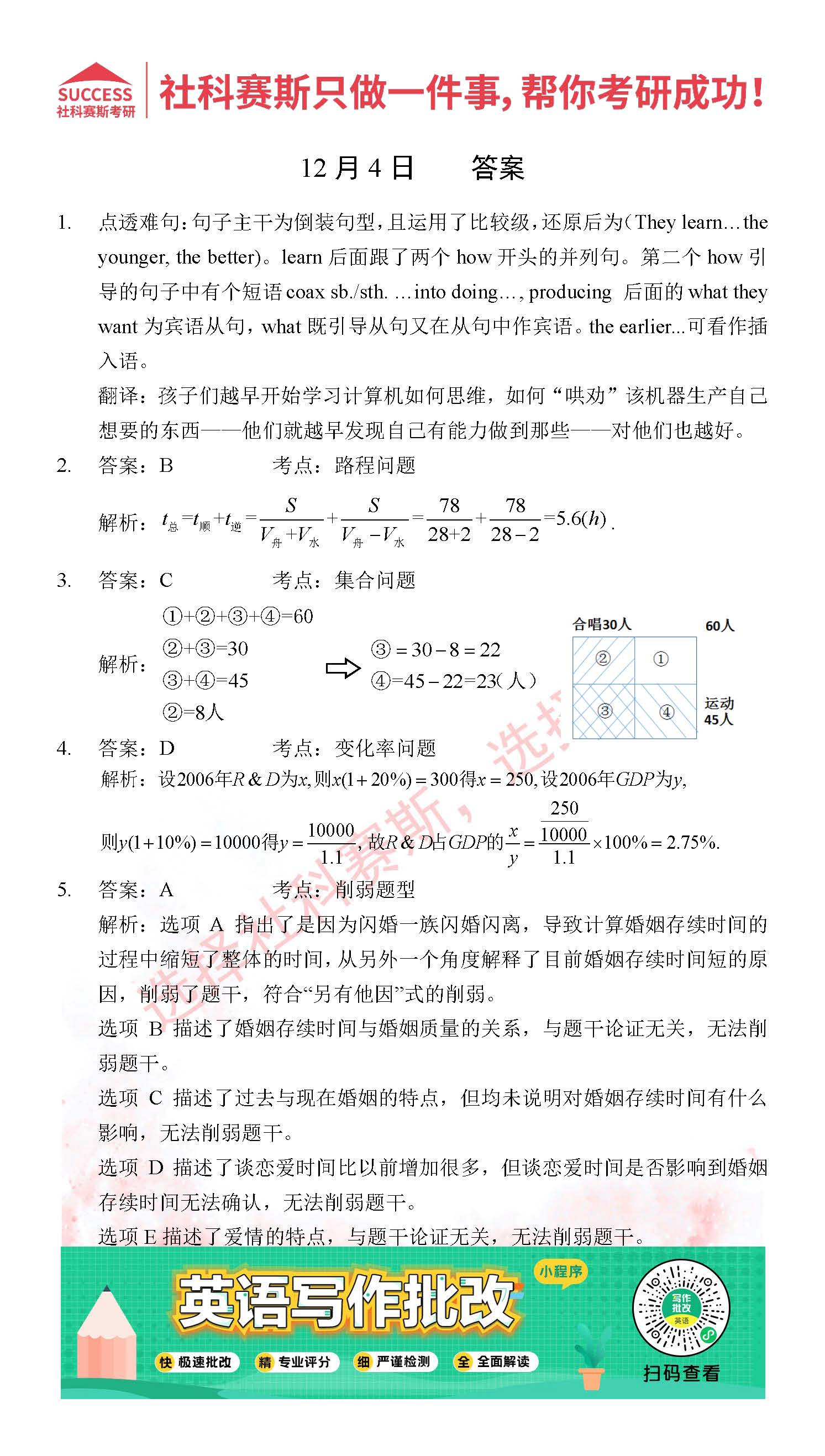 导读:考研是一场持久战,保持良好的学习习惯,是能确保复习高效的关键。今天社科赛斯MBA备考网小编整理了“2021管理类联12月4日每日一练及答案”的内容,希望能对广大考生有所帮助。