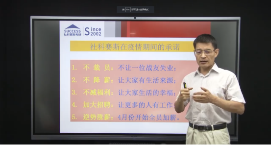 最后,社科赛斯总经理、校长李发进,对甄总观点做进一步补充。李校回顾了社科赛斯发展历程中的点点滴滴,并呼吁社会有志之士,参与到社科赛斯的发展与壮大当中,共同为社科赛斯成为一家伟大的、受人尊敬的教育公司而努力。