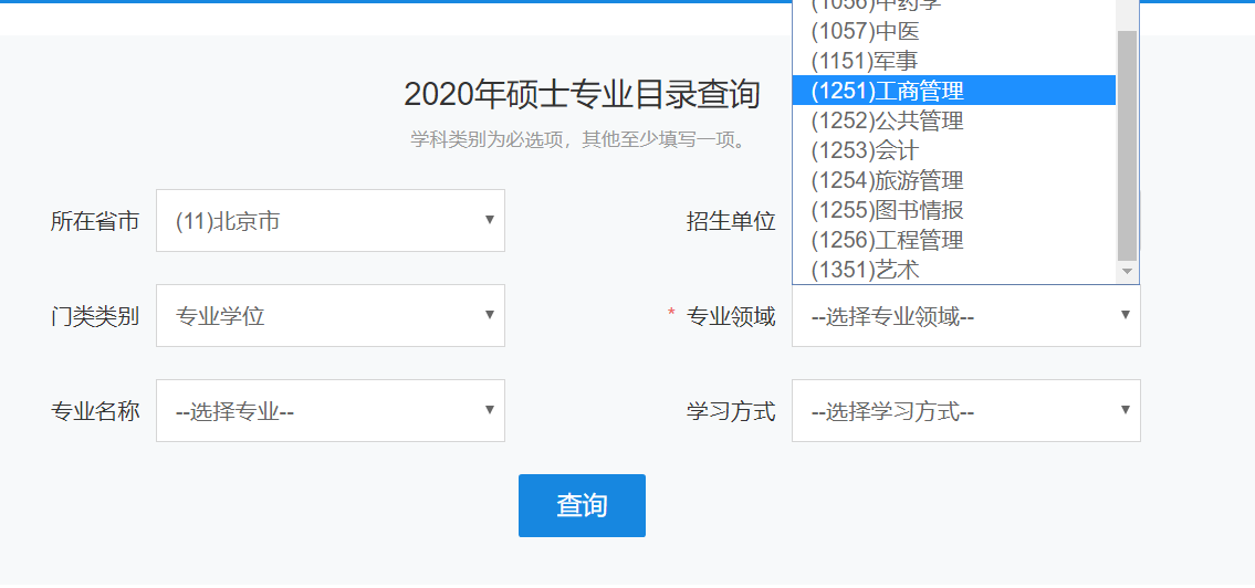 小编梦想去北京,于是打开研招网进入【硕士目录】