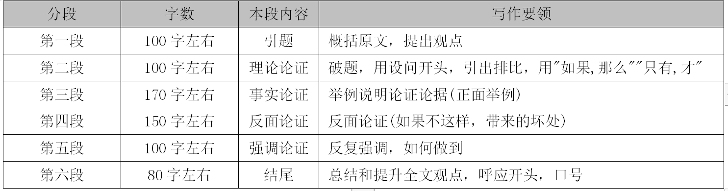 经典段落分布:虎头豹尾猪肚子(起要美丽,重要浩荡,结要响亮)