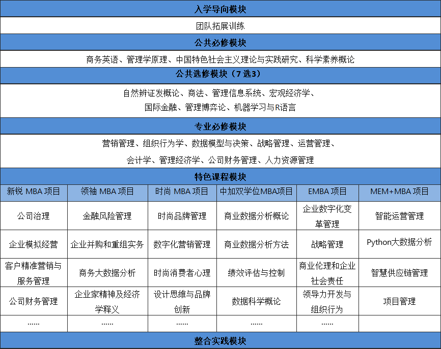 ①专业课程设置,管工深度融合。MBA跨界MEM培养模式,紧密围绕“管理+工程”的核心理念,精选MBA经典课程,增设MEM前沿课程,涵盖智能运营管理、Python大数据分析、智慧供应链管理、项目管理、商务智能建模与优化算法等课程。